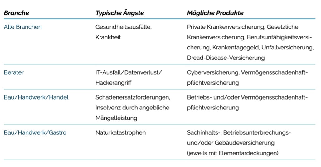 Wovor Unternehmer Angst haben, hängt dabei allerdings deutlich von der Branche ab. Unter den Gastronomen etwa spielt das Thema Gesundheit nur für rund jeden zehnten Befragten eine Rolle, dafür aber für rund jeden vierten (26 Prozent) die Angst vor Naturkatastrophen. Unter den Beratern und Händlern gibt es eine deutlich größere Sorge vor Cyberschäden. Die Angst vor unberechtigten Schadenersatzforderungen ist im Handwerk und Handel am signifikantesten ausgeprägt.