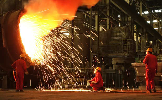 Stahlarbeiter der Dongbei Special Steel Group in der chinesischen Hafenstadt Dalian.