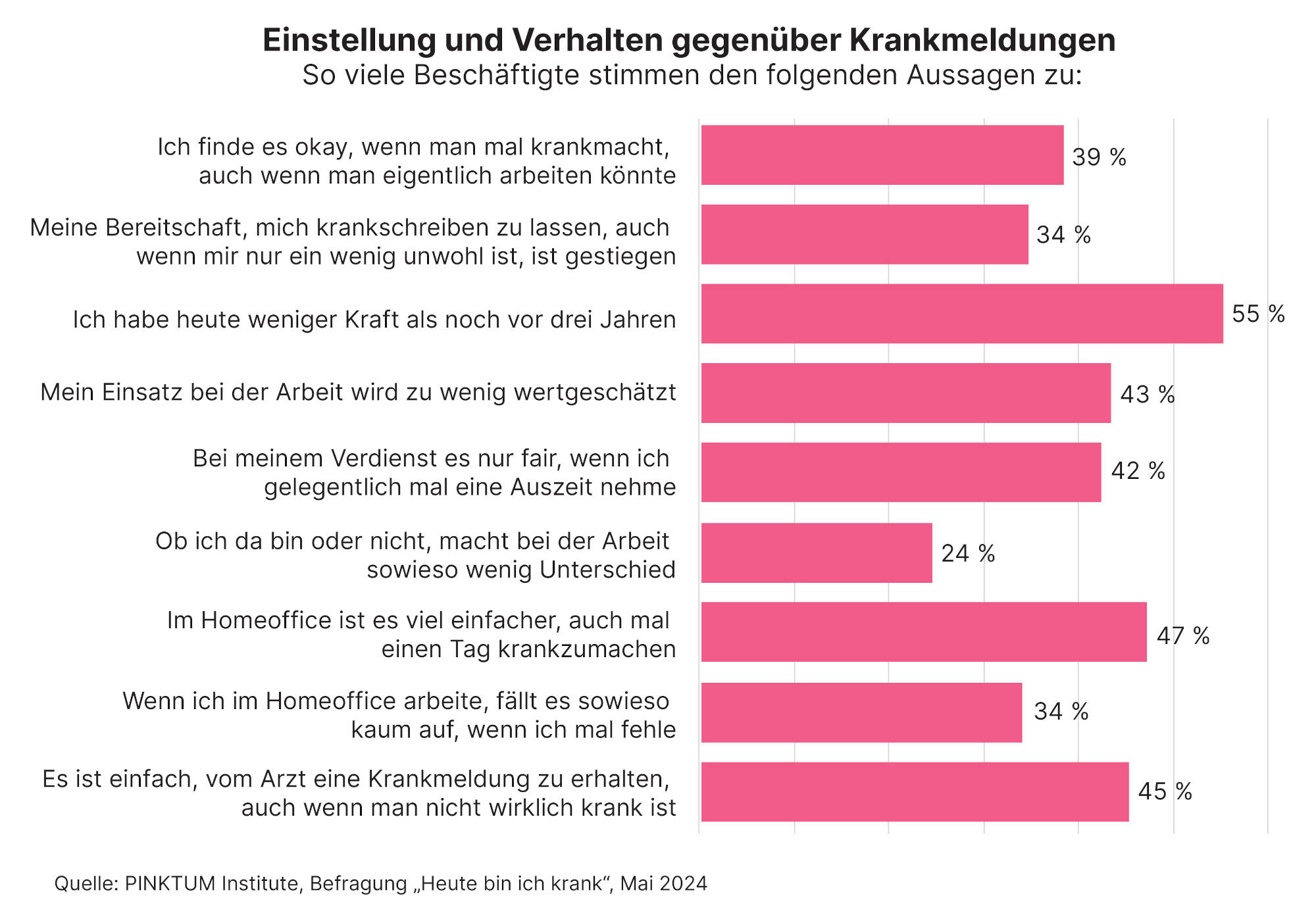 Die Arbeitslast in Deutschland hinterlässt offenbar Spuren in der Arbeitseinstellung der Menschen. Denn 39 Prozent von ihnen finden es inzwischen in Ordnung, sich krankschreiben zu lassen, ohne krank zu sein. Das geht aus einer Umfrage des Pinktum Institute im Auftrag der Pawlik Group unter 1.068 Erwerbstätigen hervor.