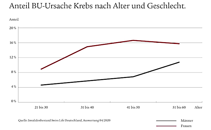 Junge Frauen häufiger berufsunfähig wegen Krebserkrankung als Männer