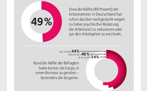 Fast drei Viertel (71 Prozent) der Arbeitnehmer hierzulande meinen, dass sie bei der Arbeit größerer psychischer Belastung ausgesetzt sind, als ihnen gut tut. Fast die Hälfte fürchtet sich daher vor einem Burnout. Das zeigt eine aktuelle Umfrage.