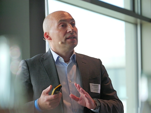 Markus Kruse von der Rating-Agentur Assekurata, bei seinem Vortrag zum Thema: „Benchmarking: Das BU-Verfahren FAIR“.