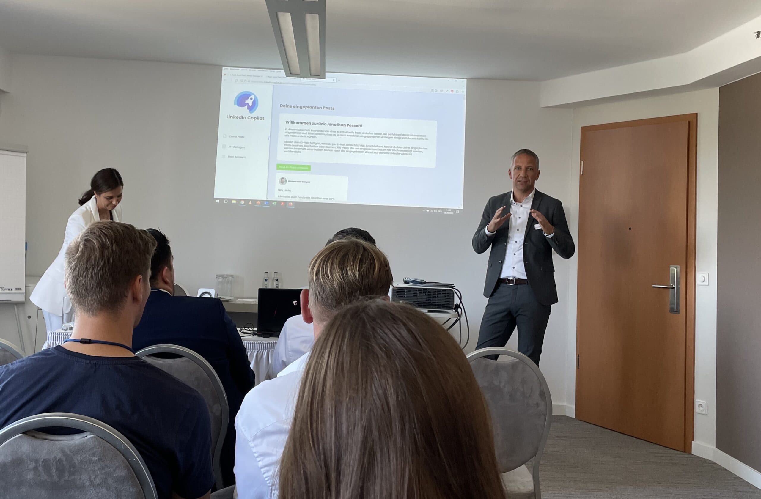 Dass Stephan Peters einen großen Saal zu bespielen weiß, demonstrierte der Video- und Marketingexperte zuvor bei einem ganz anderen Thema: Es lautete: „Die Zukunft des Versicherungsmakler-Marketings: KI-basierte Ideenfindung und Video-Content-Erstellung für eine erfolgreiche Online-Präsenz“