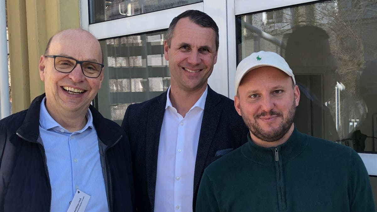 Muffintech-Chef und -Gründer Simon Moser (rechts) mit Matthias Heß (links) und Jan Roß von Pfefferminzia