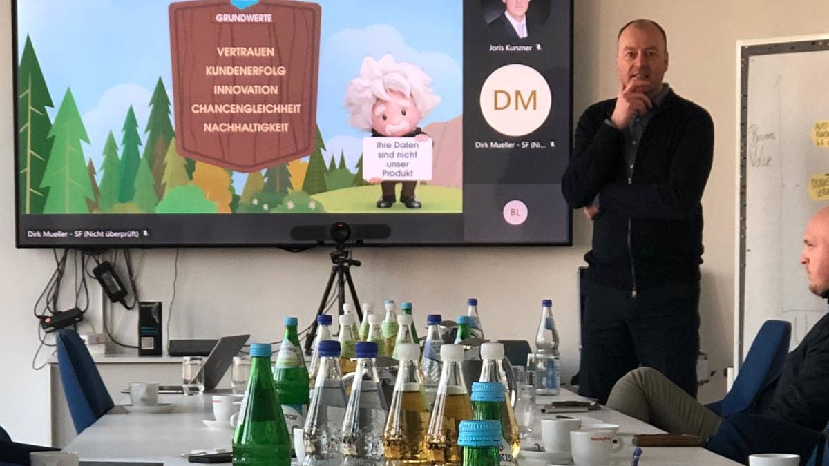 Kennt sich mit Technik und künstlicher Intelligenz (KI) bestens aus: Dirk Müller von Salesforce zeigt, wo KI Vermittlern und Versicherern heute schon problemlos unter die Arme greifen kann