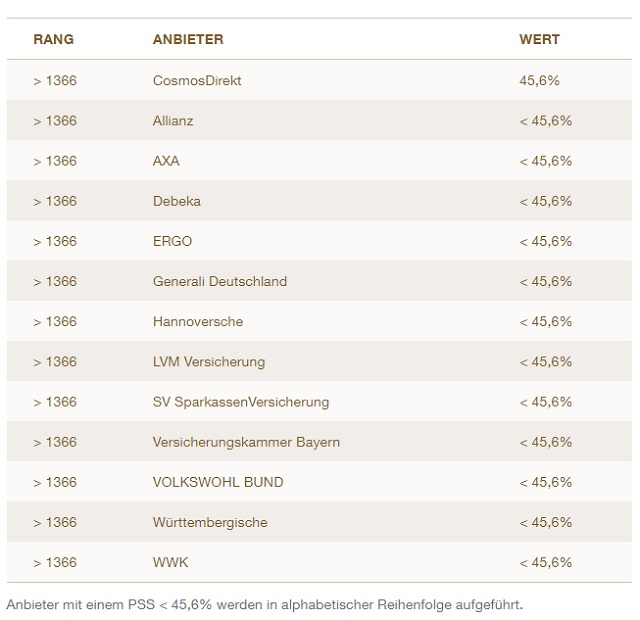 Der PSS-Wert (Price Structuring Score/Preis-Begeisterungswert) in den nachfolgenden Tabellen weist den prozentualen Anteil an Befragten aus, die laut Servicevalue von der Preisgestaltung des Unternehmens begeistert sind.