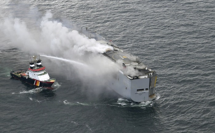 Feuerkatastrophe auf Autofrachter