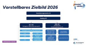 Im Zielbild sollen Vorstandsgremien in Personalunion der Vorstandsmitglieder der beiden Gruppen sowie integrierte Aufsichtsgremien unter dem Dach eines Versicherungsvereins auf Gegenseitigkeit gebildet werden.