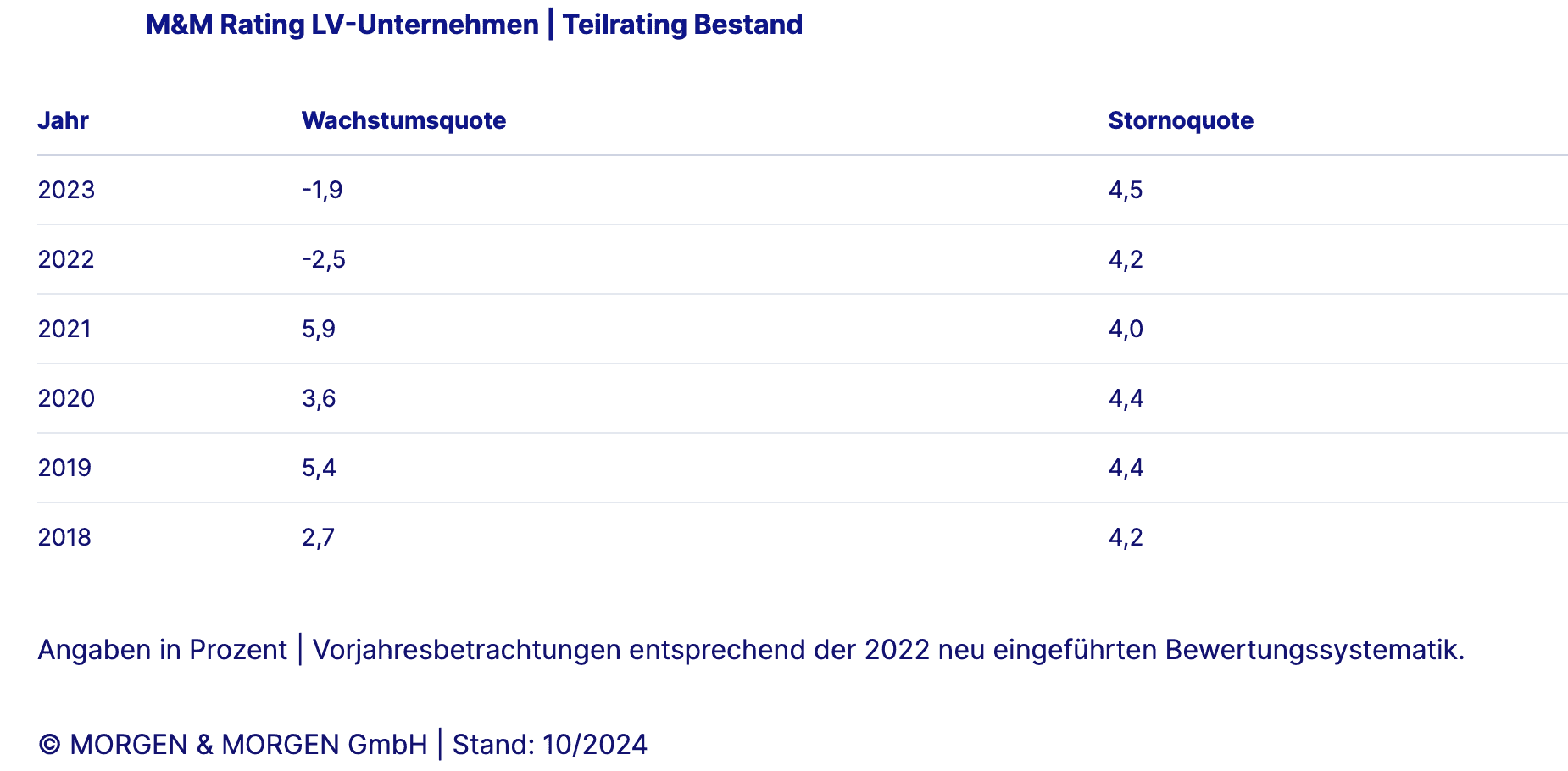 Bei diesem Rating sind vor allem zwei Kennzahlen wichtig: Die Wachstums- und Stornoquote.