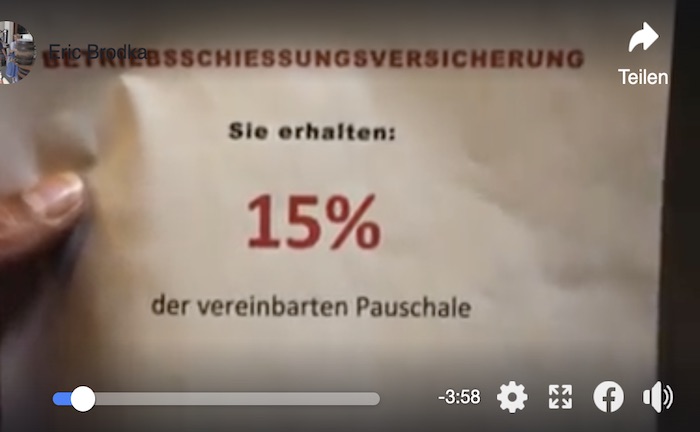 Einige Versicherer wollen von sich aus 15 Prozent der vereinbarten Summe bei Betriebsschließungsschäden zahlen, obwohl die Policen für den Pandemie-Fall gar nicht ausgelegt seien. Doch der „bayerische Kompromiss“ gerät unter Druck durch Anwälte – und durch einen „sehr ernsthaften kabarettistischen Aufschrei der Gastronomie“, wie die Macher eines Spott-Liedes über Versicherungen erklären.