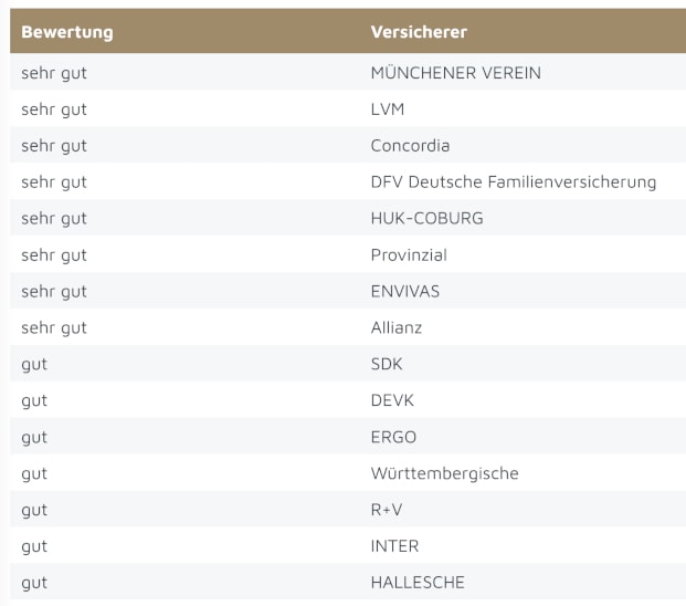 Im Detail wurden bei der Untersuchung spezifische Service- und Leistungsmerkmale aus den folgenden sechs Kategorien bewertet: Erreichbarkeit, Produktleistung, Kundenberatung, Kundenservice, Kundenkommunikation und Preis-Leistungs-Verhältnis. Dabei konnten sich zwei Versicherer in jeweils gleich zwei Kategorien die Spitzenplätze sichern: der Münchener Verein (Kundenberatung und Kundenkommunikation) und die LVM (Erreichbarkeit und Produktleistung). In der Kategorie Kundenservice hatte die Concordia die Nase vorn, und die DFV Deutsche Familienversicherung war beim Preis-Leistungs-Verhältnis Spitze.