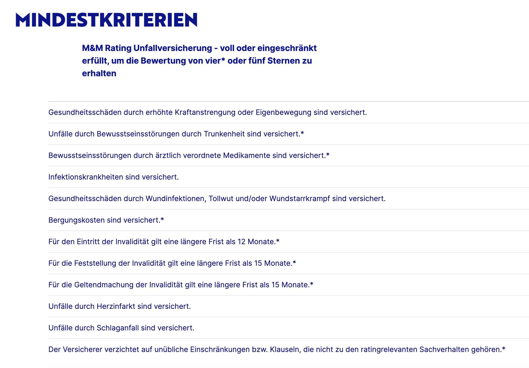 Als Orientierungshilfe soll das aktuelle Rating dienen. Es besteht aus 50 Leistungsfragen, die entsprechend ihrer Bedeutung gewichtet sind. Zudem gibt es Mindestkriterien, die von den hochbewerteten Tarifen mit fünf Sternen und zu Teilen auch von den Vier-Sterne-Tarifen erfüllt sein müssen.