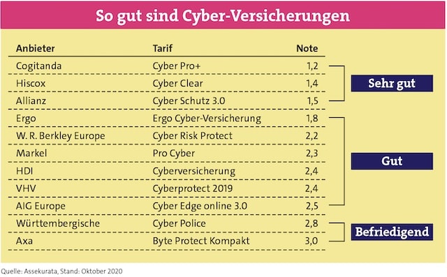 Angebote am Markt gibt es schon einige. Die Tarife von elf Anbietern hat sich die Rating-Agentur Assekurata im Herbst 2020 zum ersten Mal genauer angeschaut. Das Problem bei der Bewertung: Die Angebote am Markt sind noch recht jung, einen Marktstandard gibt es daher noch nicht – die Leistungsversprechen der Versicherer sind sehr unterschiedlich. „Aufgrund der großen Vielfalt der Bedingungen und der Intransparenz des tatsächlichen Deckungsumfangs haben wir eine spezielle Tarifanalyse für Cyber-Angebote in der Gewerbeversicherung entwickelt“, erklärt Arndt von Eicken, Managing-Analyst bei Assekurata. „Hierbei untersuchen wir jeden Tarif systematisch anhand seiner versicherungstechnischen Leistungsmerkmale. Um einen möglichst hohen Praxisbezug zu gewährleisten, haben wir unsere Bewertungsanforderungen aus Marktanalysen zu tatsächlichen Bedrohungspotenzialen und Schadenfällen abgeleitet.“