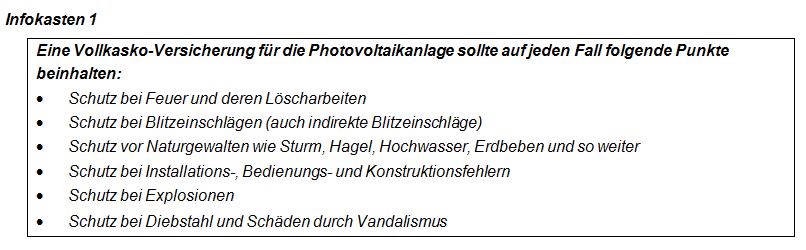 Die einschlägigen Normen und auch die meisten Versicherungen schreiben vor, alle vier Jahre eine Prüfung gemäß der geltenden Normen durchzuführen, um die elektrische Sicherheit der Photovoltaik-Anlage zu gewährleisten. „Hat die fehlende Wartung eine Vertragskündigung zur Folge, wird es schwierig für Bestandsanlagen eine neue Versicherung zu finden.“