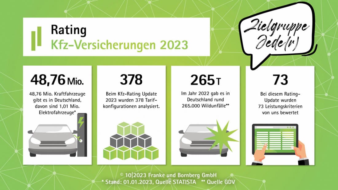 Gleichwohl betont Franke, dass es im aktuellen Rating für KFZ-Versicherungen lediglich um die Leistung gehen soll. Aber die muss eben angesichts der steigenden Prämien auch stimmen. Die Rating-Agentur analysiert seit 2016 KFZ-Tarife mit der Kombination aus Haftpflicht, Voll- und Teilkasko und Zusatzbausteinen.