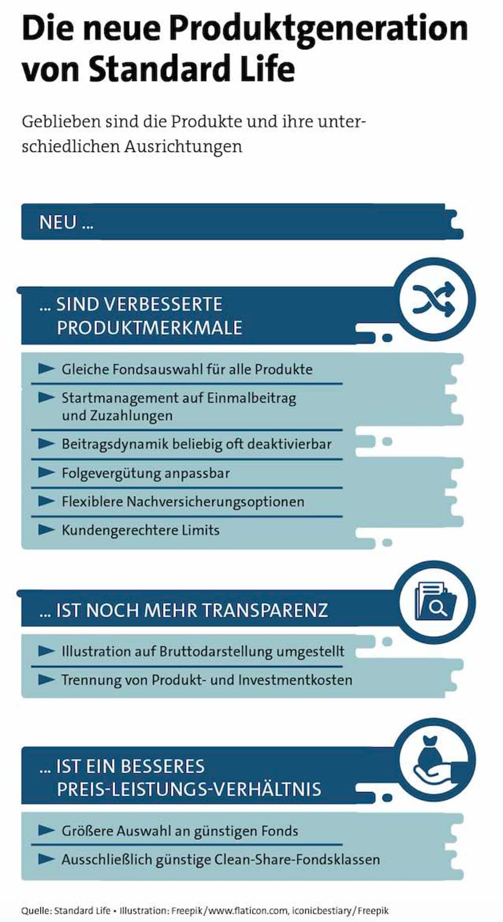 Vor allem an der Transparenz, den Kosten und der Flexibilität hat Standard Life kräftig geschraubt. So wurde die Illustration der Ablaufleistungen von der Netto- auf die Bruttomethode umgestellt. „Damit haben wir einen Trend am Markt aufgegriffen. Die Bruttomethode ist transparenter, da auch die Fondskosten berücksichtigt werden. Der Schritt entspricht, wie auch alle anderen Änderungen, voll unserem Motto: modern, transparent, fair“, sagt Christian Nuschele, Vertriebschef bei Standard Life Deutschland.
