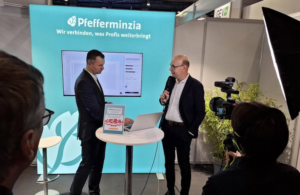 Die beiden Pfefferminzia-Gesellschafter Jan Roß (links) und Matthias Heß haben die Messe genutzt, um unser großes neues Projekt anzukündigen und zu erklären: Pfefferminzia.Pro. Alles was Makler brauchen auf einer Plattform. Das ist das Ziel. Was sich dahinter verbirgt, können Sie hier nachlesen.