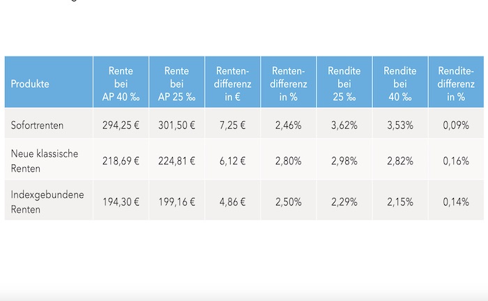 Assekurata beruft sich dabei auf Modellrechnungen, welche die Analysten für unterschiedliche Rentenversicherungsprodukte (Sofortrente, Neue klassische Rente, Indexgebundene Rente) marktrepräsentativer Anbieter anstellten. Ziel war demnach, die Rentenhöhe bei unterschiedlichen Provisionssätzen zu vergleichen.