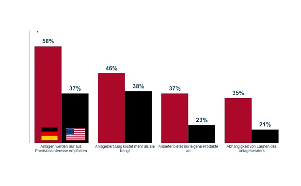 Die Deutschen sind bei der Geldanlage digitaler und internationaler als US-Amerikaner, zugleich aber viel misstrauischer. Das zeigt eine Studie der Quirin Bank, für die sie zeitgleich Anleger in beiden Ländern befragte.