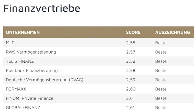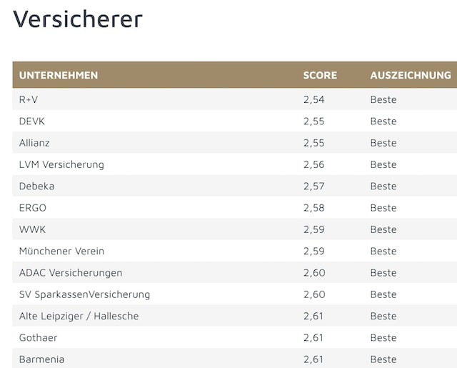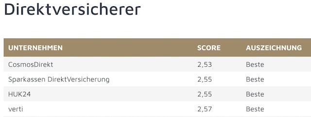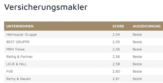 Für den Versicherungsmarkt waren insbesondere die Kategorien Direktversicherer, Finanzvertriebe, Krankenkassen, Versicherer und Versicherungsmakler interessant. Die jeweils bestbewerteten Anbieter finden Sie auf den folgenden Seiten.