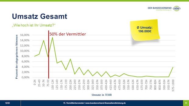 In Feierlaune ist man im Verband aber trotzdem nicht. Denn die deutliche Zunahme des durchschnittlichen Gewinns ist einem Trend zu verdanken, der viele sorgenvoll stimmt. „Die Entwicklung, dass kleine Vermittlerbüros aufgeben oder übernommen werden, spiegelt sich in diesen Zahlen wider“, sagt AfW-Vorstand Frank Rottenbacher. So konnte der Durchschnittsgewinn vor allem deshalb zulegen, weil es „einen Anstieg der Teilnehmergruppe gab, die Gewinne jenseits der 300.000-Euro-Marke angegeben haben“, wie der Verband berichtet.
