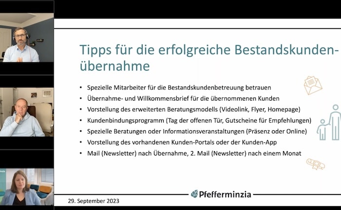 Im September veranstaltet Pfefferminzia gemeinsam mit den Bestandsexperten Dr. Peter Schmidt und Dirk Henkies drei Online-Seminare zum Thema Bestands-/Firmenverkauf. Die Teilnahme ist kostenfrei! Die Details lesen Sie hier.