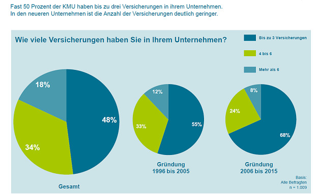Zum dritten Mal hat die Gothaer beim Versicherungsschutz von KMU genauer nachgefragt. Danach zögern gerade jüngere Unternehmen, die also erst seit 2006 gegründet wurden, mehrere Versicherungsverträge abzuschließen. Mehr als vier Policen haben hier nur 24 Prozent, über sechs Policen haben nur 8 Prozent. „Doch gerade zu Beginn des Geschäftswachstums ist die richtige Absicherung durch einen starken Partner wichtig. Unvorhergesehene Ereignisse können das Unternehmen so nicht aus der Bahn werfen“, sagt Thomas Leicht, Vorstandsvorsitzender der Gothaer Allgemeine Versicherung.