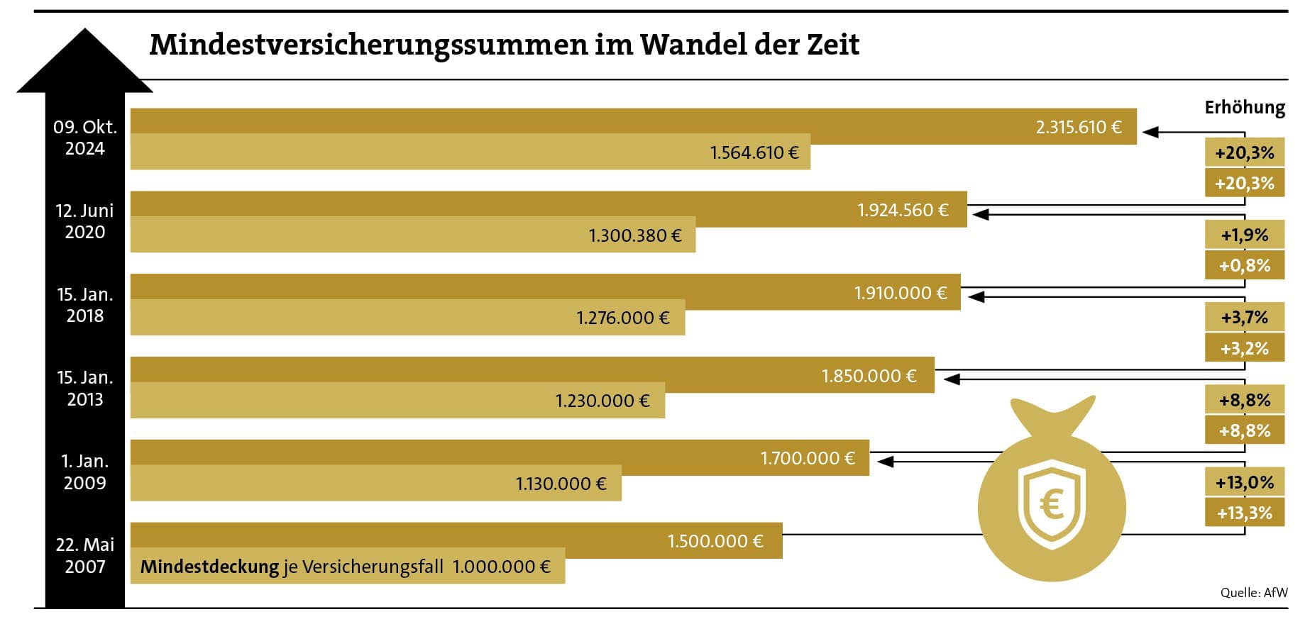 In der nächsten Zeit werden viele Makler Post von ihrem Anbieter der Vermögensschadenhaftpflichtversicherung (VSH) erhalten. Grund ist die Delegierte Verordnung (EU) 2024/896 der Europäischen Kommission vom 20. März 2024. Die Mindestversicherungssummen für die VSH für Versicherungsvermittler und -berater werden aufgrund der gestiegenen Verbraucherpreise erhöht. Und zwar um mehr als 20 Prozent.