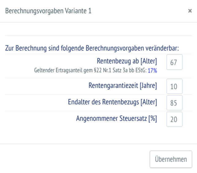 Selbstverständlich spielen weitere Faktoren eine Rolle, wie zum Beispiel die Inflation, die familiäre Situation bezüglich einer Versorgung Dritter oder der individuelle Steuersatz. Diese sind im Artikel zum Teil beleuchtet – dort, wo sie eine wichtige Größe darstellen.