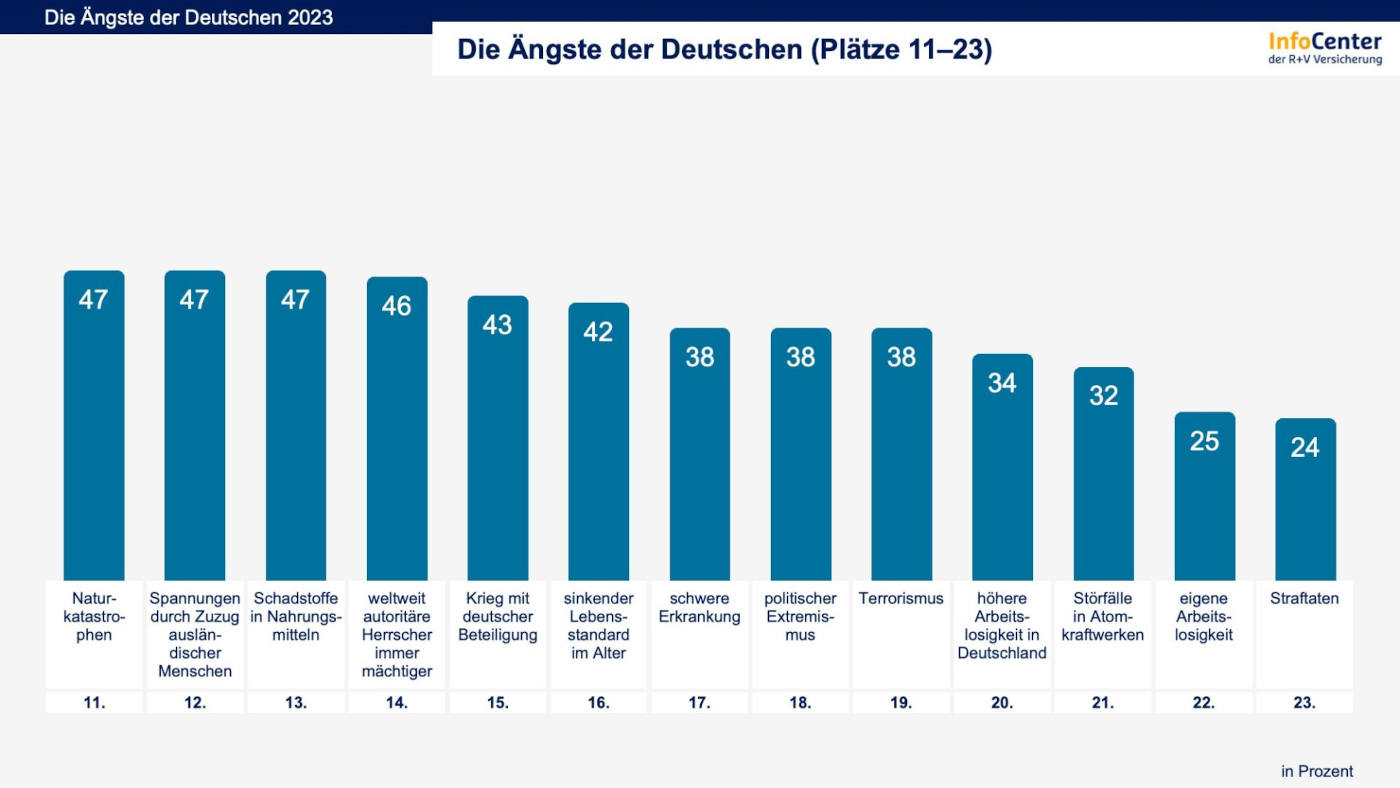 Die folgenden Grafiken zeigen die insgesamt 20 größten Ängste der Deutschen über alle Altersgruppen hinweg.