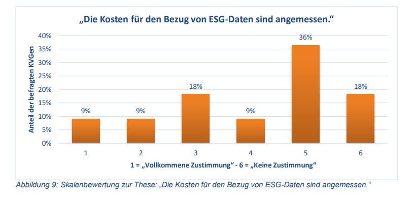 Eine häufig erhobene Kritik an ESG-Daten, die auch die befragten KVGen teilen, ist ihre mangelnde Vergleichbarkeit. Zu unterschiedlich gehen die Datenanbieter vor und zu unterschiedlich sind ihre Schwerpunkte. Daneben monieren viele KVGen die Datenqualität. Nur rund 38 Prozent betrachten sie als „hoch“.