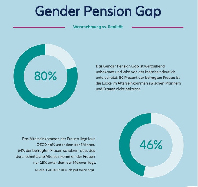 Die Umfrage der Allianz zeigt, dass Frauen die Lücke in ihrer Altersvorsorge, insbesondere auch im Vergleich zu Männern, oftmals nicht kennen.