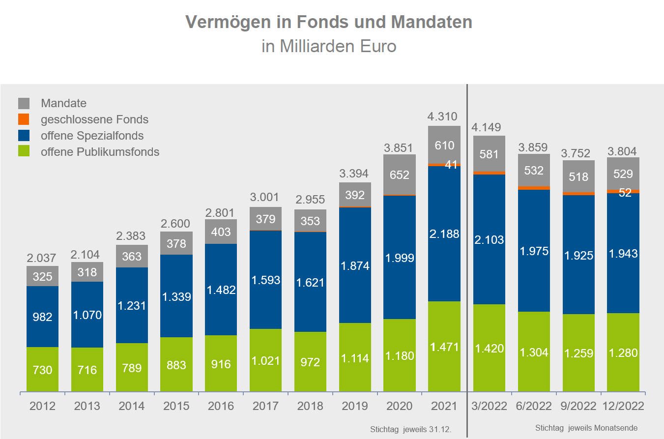 Doch das störte offenbar kaum. Im dritten Quartal zogen Anleger per Saldo 6,6 Milliarden Euro aus Rentenfonds ab, und im vierten Quartal weitere 4,2 Milliarden Euro. Es wäre zu wünschen, dass zumindest ein Teil davon in Mischfonds floss, die durch Verluste in Aktien und Anleihen gleichermaßen ebenfalls wieder sehr interessant wurden. Sie sammelten 2022 per Saldo 12,5 Milliarden Euro ein.