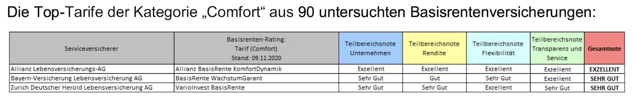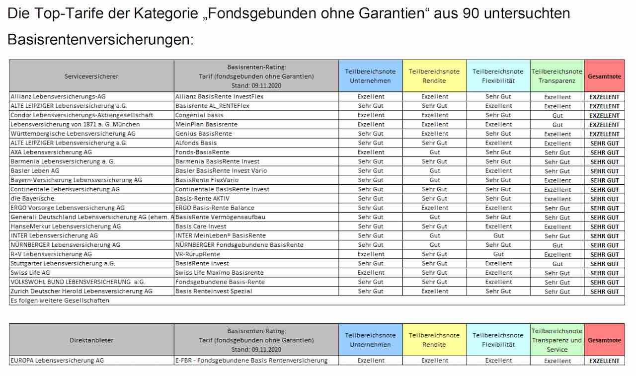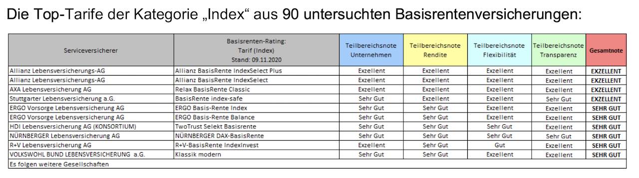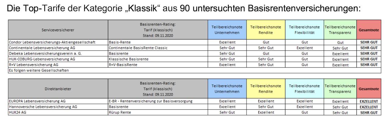 Das Institut für Vorsorge und Finanzplanung (IVFP) hat sich in einem aktuellen Rating 90 Rürup-Versicherungen vorgenommen. Die Einteilung der Tarife erfolgte dabei in die Kategorien „Klassik“, „Klassik Plus“, „Fondsgebunden mit/ohne Garantie“, „Comfort“ und „Indexpolicen“.