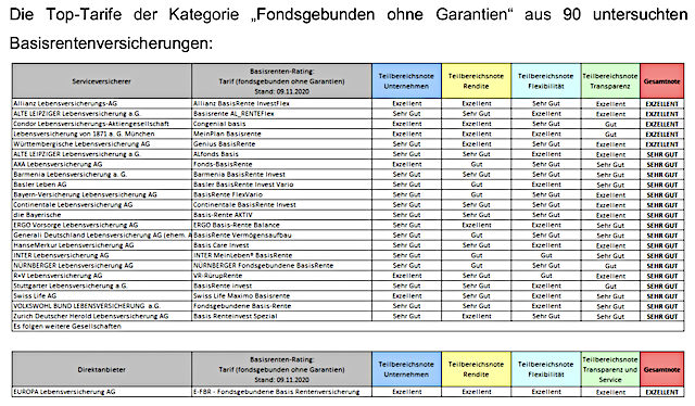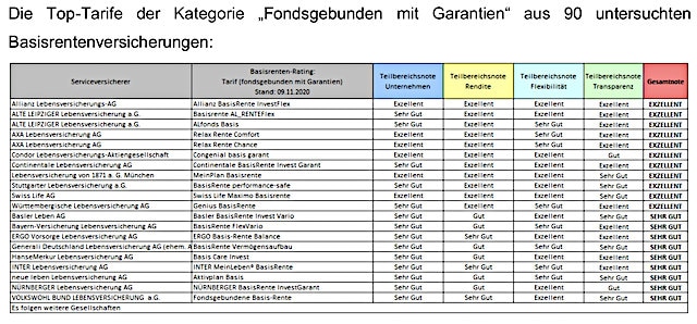 Die Gesamtnote setzt sich dabei aus den vier Teilbereichsnoten Unternehmensqualität, Rendite, Flexibilität sowie Transparenz/Service zusammen. Die Ergebnisse werden mit den Auszeichnungen „Exzellent – Sehr Gut – Gut“ bewertet, sowohl im Gesamtergebnis, als auch in den einzelnen Teilbereichen.