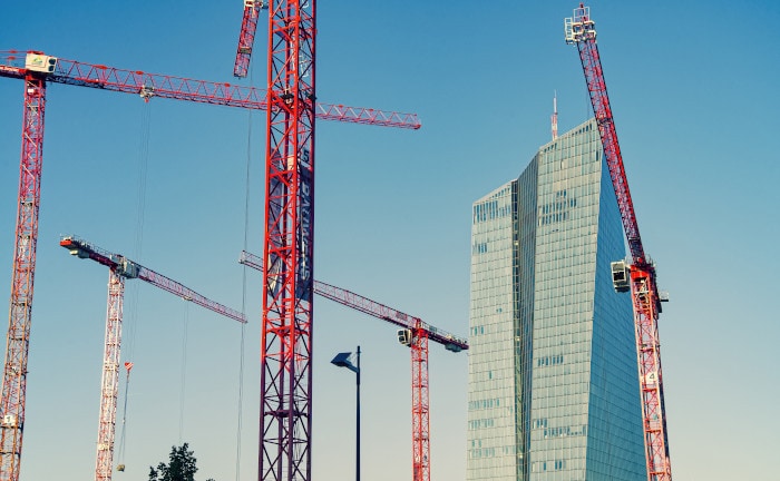 Baustelle vor dem Gebäude der Europäischen Zentralbank: Das Niedrigzinsumfeld und die Corona-Pandemie beeinflussen die Altersvorsorge hierzulande stark.
