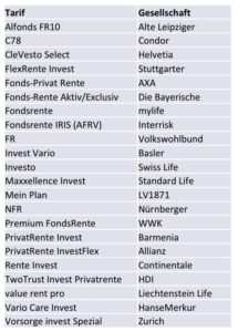Die Tarife mit den besten Ergebnissen über alle Kundenprofile hinweg sind demnach „Mein Plan“ von LV 1871, „FlexRente Invest“ von der Stuttgarter, „TwoTrust Invest Privatrente“ von HDI, „PrivatRente Invest“ von Barmenia sowie „Investo“ von Swiss Life.