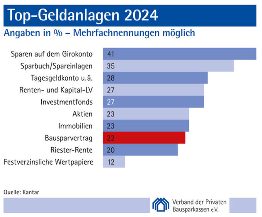 Im Vergleich zum Vorjahr verzeichnen damit acht von zehn Anlageformen ein zum Teil deutliches Plus und nur zwei ein leichtes Minus. „Angesichts eines schwachen Wirtschaftswachstums halten die Bürger ihr Geld zusammen. Sicher und kurzfristig verfügbar, ist für viele der Hauptsparanreiz“, sagt der Hauptgeschäftsführer des Verbands der Privaten Bausparkassen, Christian König.