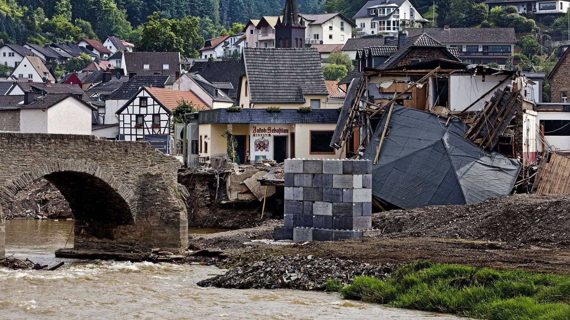 In Europa verursachte vor allem Starkregen im Juli lokal verheerende Schäden, insbesondere im Westen Deutschlands. In den betroffenen Regionen regnete es durch das Tiefdruckgebiet „Bernd“ so stark wie sonst nur etwa einmal in 100 Jahren. Die Folge waren Sturzfluten an Nebenflüssen wie der Ahr in Rheinland-Pfalz, die auch ganze Gebäude wegrissen. Hohe Schäden entstanden an der Infrastruktur wie Bahnlinien, Straßen und Brücken. Mehr als 220 Menschen kamen ums Leben.