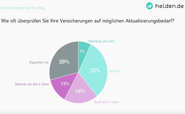 Dass die vereinbarte Versicherungssumme und der tatsächliche Wert des Hausrats häufig weit auseinanderliegen, sei auch auf die seltene Überprüfung der Verträge durch die Versicherungsnehmer zurückzuführen, heißt es. So prüfen laut Studie nur 39 Prozent der Bundesbürger ihre Verträge mindestens einmal jährlich auf einen möglichen Aktualisierungsbedarf, knapp jeder dritte tut dies „eigentlich nie“ (siehe Grafik). Viele notwendige Anpassungen der laufenden Verträge nach oben blieben somit regelmäßig aus, so die Autoren.