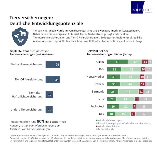 „Tierversicherungen haben hierzulande noch deutliche Wachstumspotenziale“, sagt Torsten Melles, Geschäftsführer bei Nordlight Research. „Es gilt, dieses stärker als bisher zu adressieren und einzulösen. Im Vergleich zu anderen europäischen Ländern hinkt der deutsche Tierversicherungsmarkt weiterhin hinterher“.