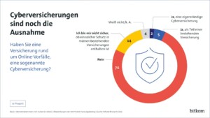 76 Prozent der Befragten haben keinen Cyberversicherungsschutz und 14 Prozent wissen nicht, ob bestehende Versicherungen möglicherweise solche Risiken abdecken. „Eine Cyberversicherung kann für Privatpersonen eine gute Ergänzung im Versicherungsportfolio sein, um sich gegen Cyberangriffe und deren Folgen abzusichern“, sagt Felix Kuhlenkamp, Bereichsleiter Sicherheitspolitik beim Digitalverband Bitkom.